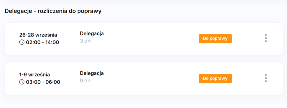 Jeśli przy weryfikacji rozliczenia delegacji przez pracownika, administrator uzna że rozliczenie posiada błędy lub niejasności, może zdecydować o skierowaniu rozliczenia do poprawy.